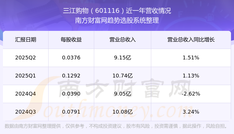 三江购物(601116)披露2025年第二季度报告,报告期实现营收9.15亿元,同比1.51%;归母净利润2061.17万元,同比-18.97%;扣非净利润1500.81万元,同比-30.6%。