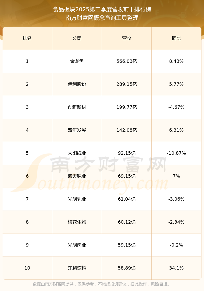 按照南方财富网概念查询工具统计,该股所属板块为食品板块,该板块共有119只股票,三江购物2025第二季度营收在该板块中排名为第119名,该板块2025第二季度营收排名前十的股票如下表: