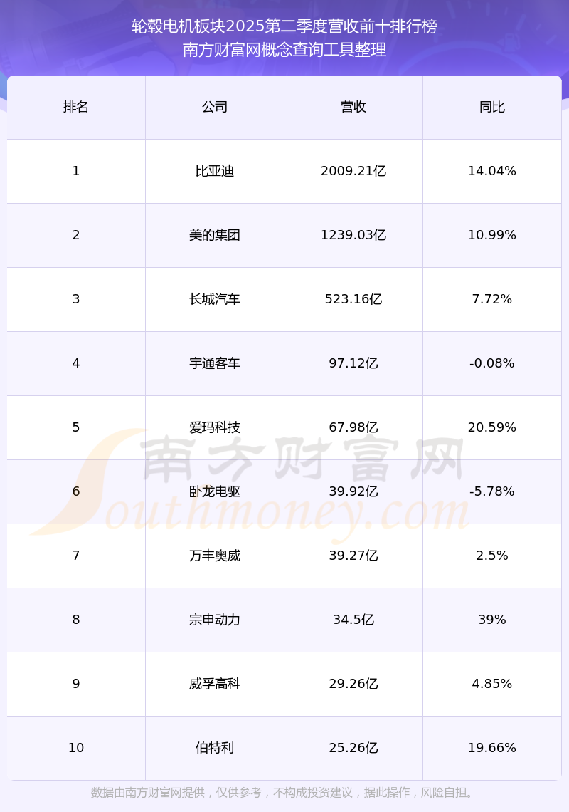 按照南方财富网概念查询工具统计,该股所属板块为轮毂电机板块,该板块共有39只股票,圣龙股份2025第二季度营收在该板块中排名为第30名,该板块2025第二季度营收排名前十的股票如下表: