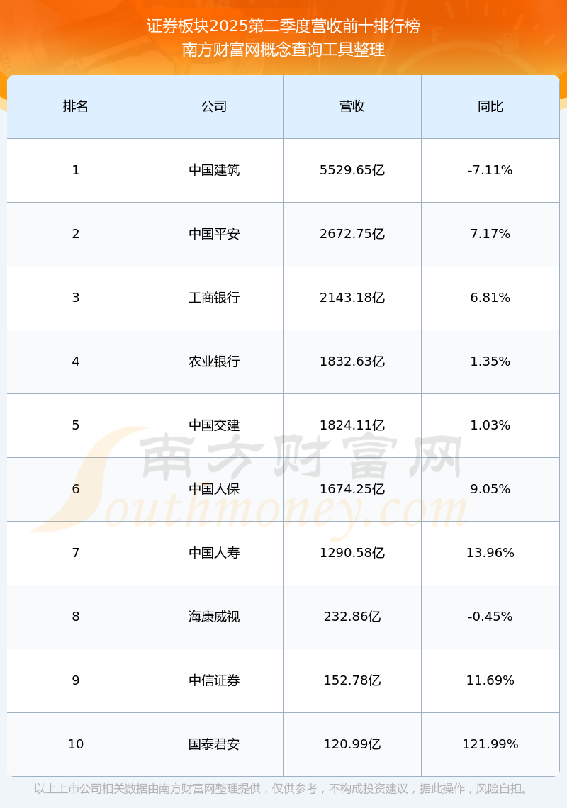 按照南方财富网概念查询工具统计,该股所属板块为证券板块,该板块共有65只股票,西南证券2025第二季度营收在该板块中排名为第41名,该板块2025第二季度营收排名前十的股票如下表: