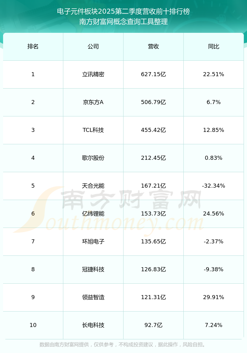 按照南方财富网概念查询工具统计,该股所属板块为电子元件板块,该板块共有354只股票,铜峰电子2025第二季度营收在该板块中排名为第220名,该板块2025第二季度营收排名前十的股票如下表:
