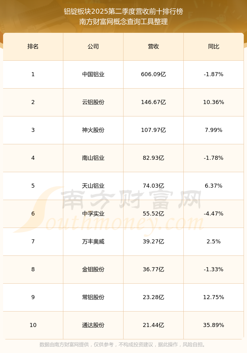 按照南方财富网概念查询工具统计,该股所属板块为铝锭板块,该板块共有23只股票,怡球资源2025第二季度营收在该板块中排名为第14名,该板块2025第二季度营收排名前十的股票如下表: