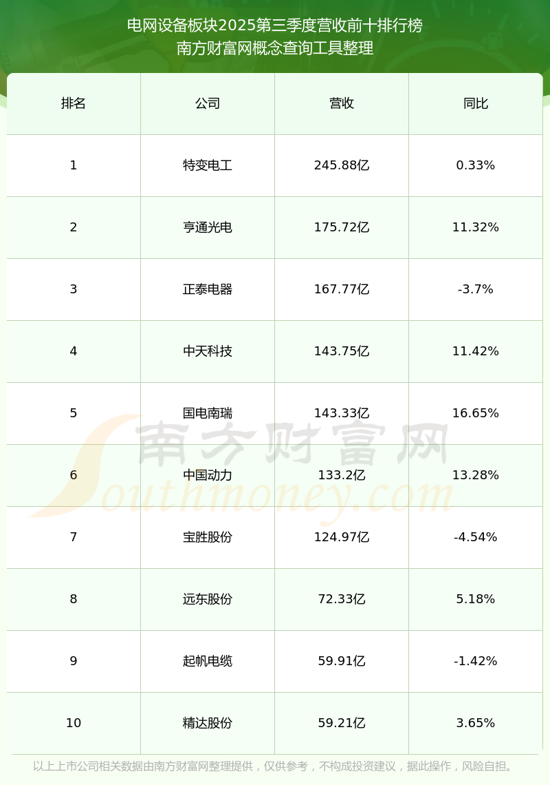 按照南方财富网概念查询工具统计,该股所属板块为电网设备板块,该板块共有160只股票,科林电气2025第三季度营收在该板块中排名为第56名,该板块2025第三季度营收排名前十的股票如下表: