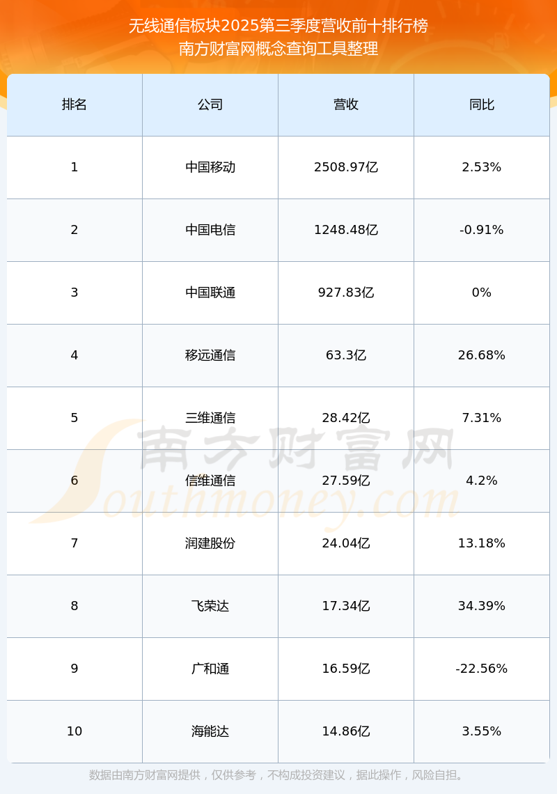 按照南方财富网概念查询工具统计,该股所属板块为无线通信板块,该板块共有30只股票,有方科技2025第三季度营收在该板块中排名为第20名,该板块2025第三季度营收排名前十的股票如下表:
