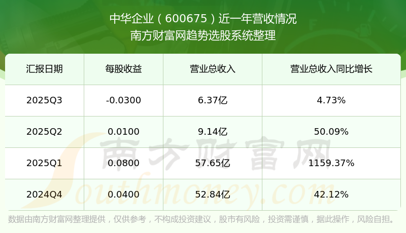 中华企业股票近一年营收情况如下表: