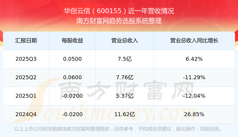 华创云信股票近一年营收情况如下表: