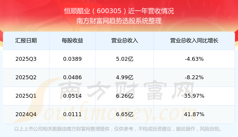 2025年第三季度,恒顺醋业营收同比-4.63%,净利润同比17.65%。