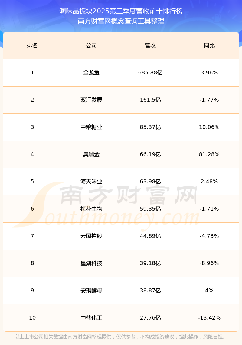 按照南方财富网概念查询工具统计,该股所属板块为调味品板块,该板块共有49只股票,恒顺醋业2025第三季度营收在该板块中排名为第32名,该板块2025第三季度营收排名前十的股票如下表: