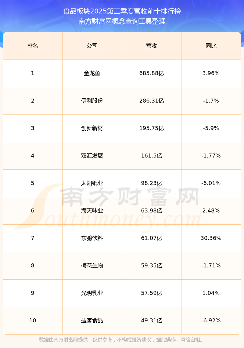 按照南方财富网概念查询工具统计,该股所属板块为食品板块,该板块共有119只股票,绝味食品2025第三季度营收在该板块中排名为第30名,该板块2025第三季度营收排名前十的股票如下表: