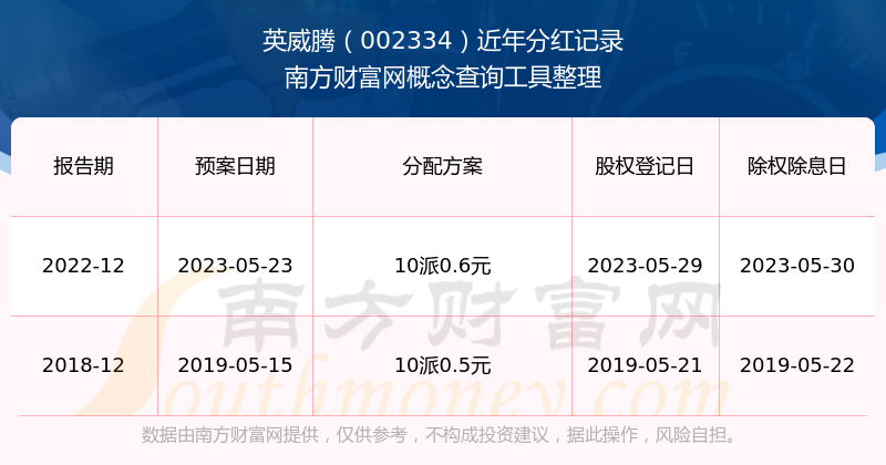 英威腾最新一次公布的分红方案为10派0.6元。本次权益分派股权登记日为2023年5月29日,除权除息日为2023年5月30日,派息日为2023年5月30日。