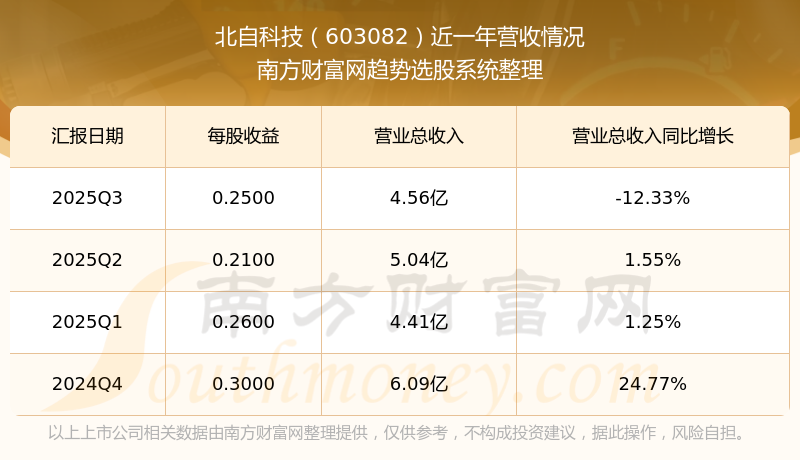 2025年第三季度,北自科技营收同比-12.33%,净利润同比-17.94%。