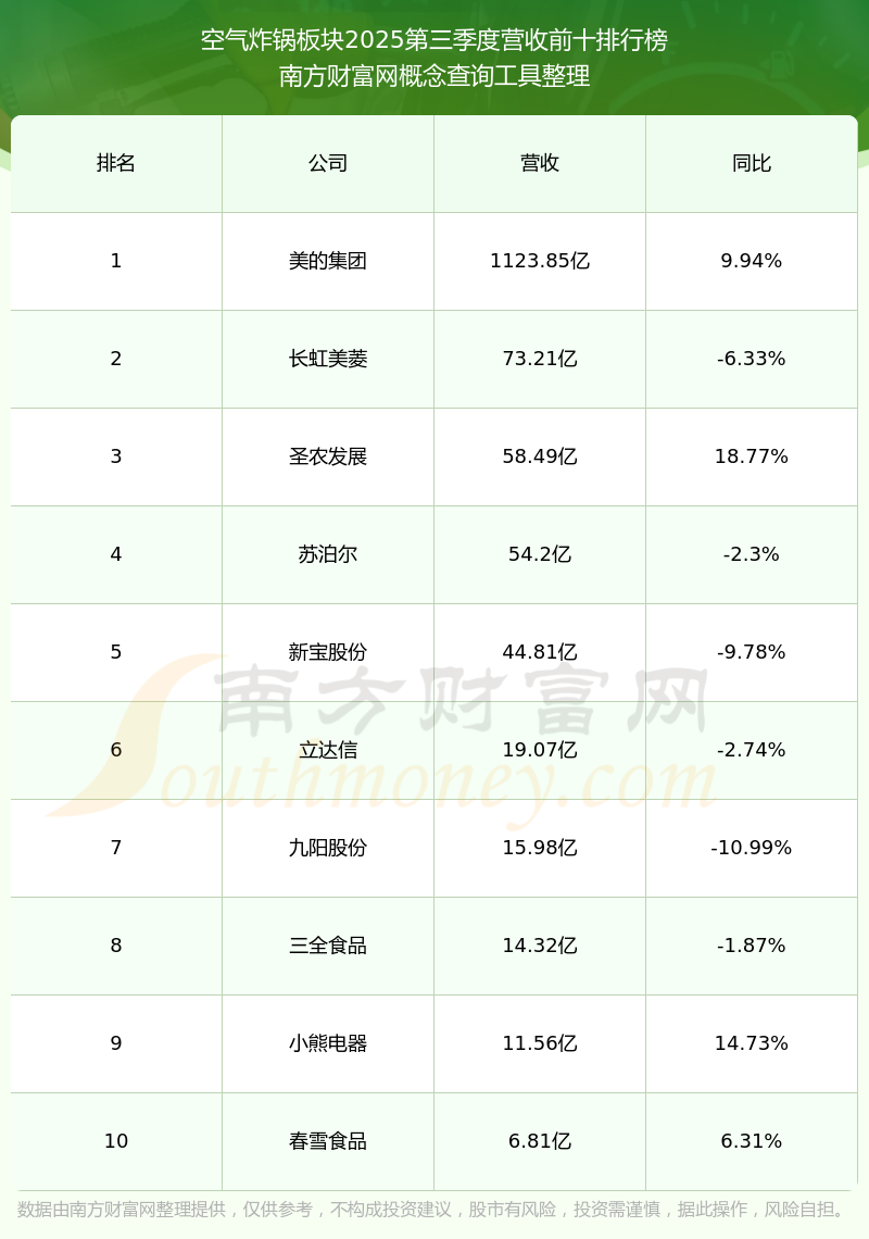 按照南方财富网概念查询工具统计,该股所属板块为空气炸锅板块,该板块共有17只股票,比依股份2025第三季度营收在该板块中排名为第11名,该板块2025第三季度营收排名前十的股票如下表: