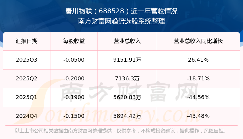秦川物联披露了2025年第三季度财报。报告显示,秦川物联2025年第三季度实现营收9151.91万元,同比26.41%;归母净利润-903.42万元,同比59.44%。