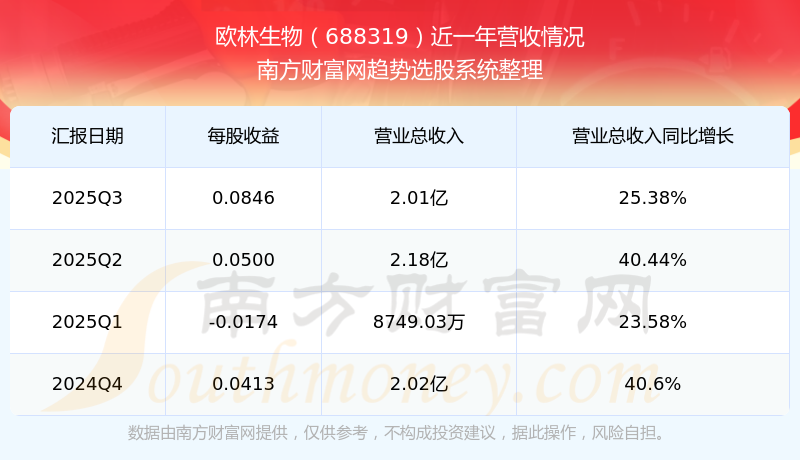 欧林生物股票近一年营收情况如下表: