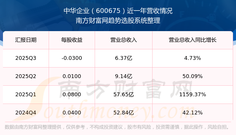 中华企业股票近一年营收情况如下表: