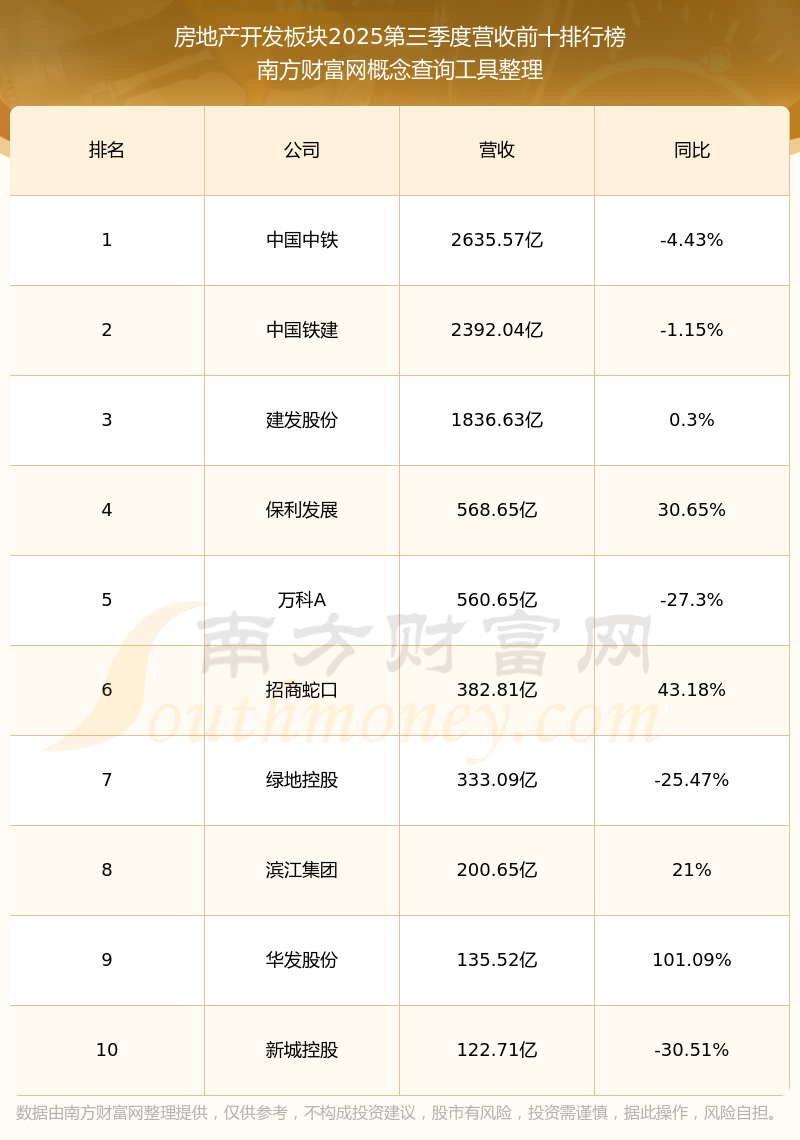 按照南方财富网概念查询工具统计,该股所属板块为房地产开发板块,该板块共有142只股票,中华企业2025第三季度营收在该板块中排名为第64名,该板块2025第三季度营收排名前十的股票如下表: