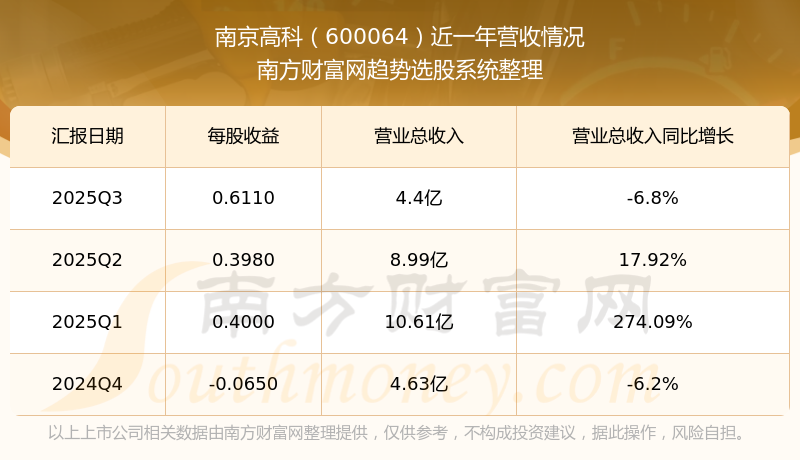 南京高科2025年第三季度财报显示,公司主营收入4.4亿元,同比-6.8%;归母净利润10.57亿元,同比29.64%;扣非净利润5.86亿元,同比-8.91%。