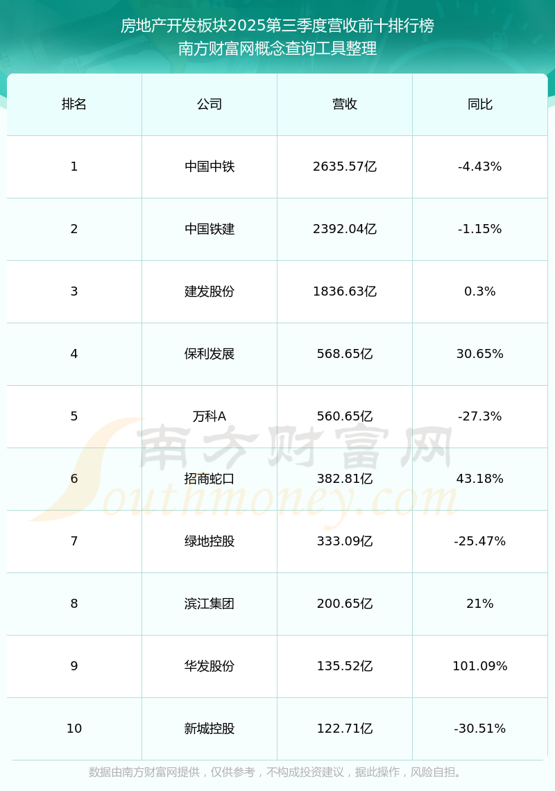 按照南方财富网概念查询工具统计,该股所属板块为房地产开发板块,该板块共有142只股票,南京高科2025第三季度营收在该板块中排名为第77名,该板块2025第三季度营收排名前十的股票如下表: