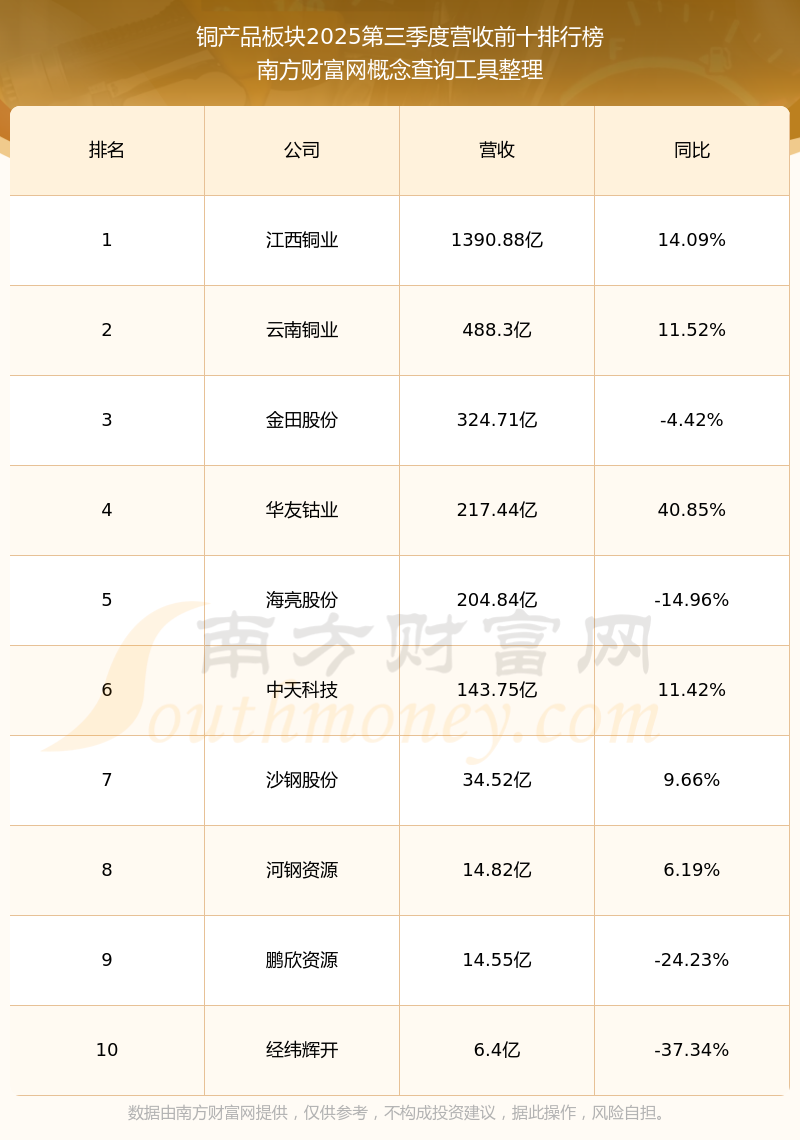 按照南方财富网概念查询工具统计,该股所属板块为铜产品板块,该板块共有11只股票,豫光金铅2025第三季度营收在该板块中排名为第11名,该板块2025第三季度营收排名前十的股票如下表: