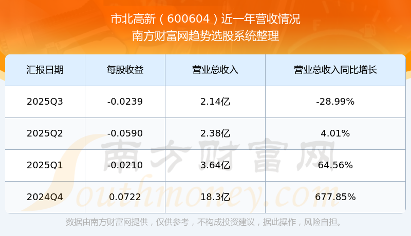 市北高新(600604)披露2025年第三季度报告,报告期实现营收2.14亿元,同比-28.99%;归母净利润-4480.56万元,同比-216.53%;扣非净利润-8648.15万元,同比-446.02%。