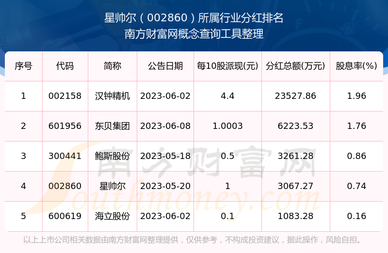 按照南方财富网趋势选股系统统计,星帅尔所属行业为压缩机行业,压缩机行业分红排名情况如下表: