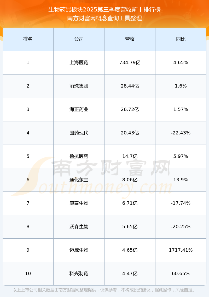 按照南方财富网概念查询工具统计,该股所属板块为生物药品板块,该板块共有20只股票,迈威生物2025第三季度营收在该板块中排名为第9名,该板块2025第三季度营收排名前十的股票如下表: