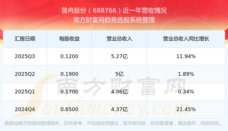 普冉股份发布2025年第三季度财报。实现总营收5.27亿元,同比增长11.94%;扣非净利润同比增长-86.28%至1042.95万元。