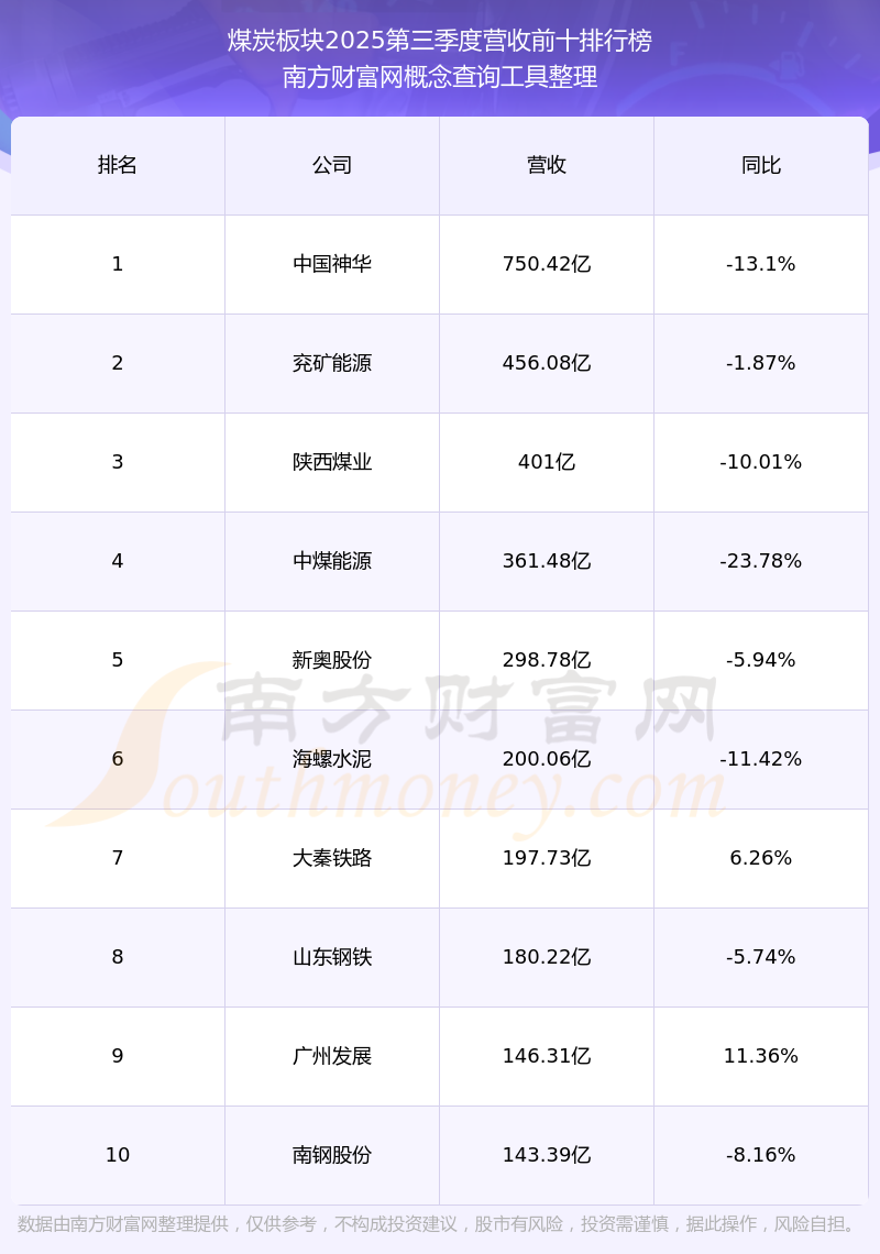 按照南方财富网概念查询工具统计,该股所属板块为煤炭板块,该板块共有72只股票,苏能股份2025第三季度营收在该板块中排名为第38名,该板块2025第三季度营收排名前十的股票如下表:
