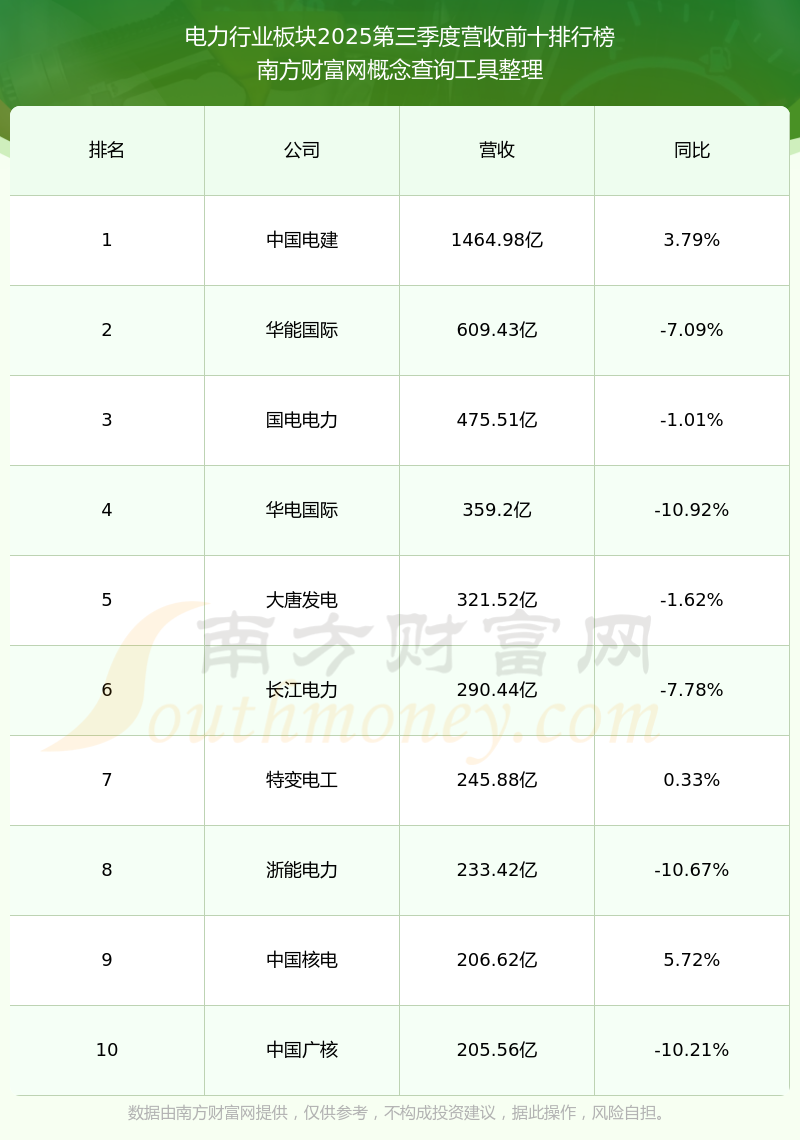 按照南方财富网概念查询工具统计,该股所属板块为电力行业板块,该板块共有93只股票,三峡水利2025第三季度营收在该板块中排名为第36名,该板块2025第三季度营收排名前十的股票如下表: