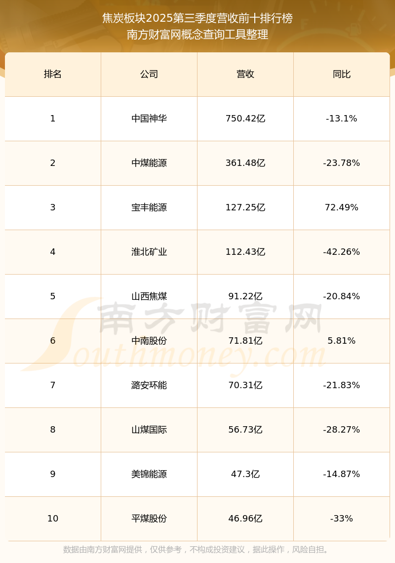 按照南方财富网概念查询工具统计,该股所属板块为焦炭板块,该板块共有22只股票,宝泰隆2025第三季度营收在该板块中排名为第21名,该板块2025第三季度营收排名前十的股票如下表: