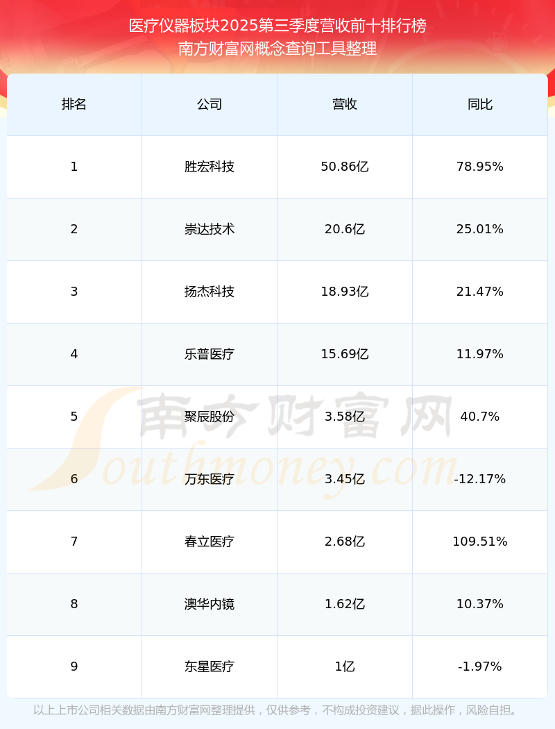 按照南方财富网概念查询工具统计,该股所属板块为医疗仪器板块,该板块共有9只股票,普门科技2025第三季度营收在该板块中排名为第9名,该板块2025第三季度营收排名前十的股票如下表:
