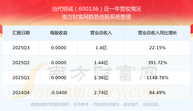当代明诚股票近一年营收情况如下表: