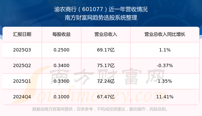 渝农商行(601077)披露2025年第三季度报告,报告期实现营收69.17亿元,同比1.1%;归母净利润29.95亿元,同比1.53%;扣非净利润29.79亿元,同比1.68%;基本每股收益0.25元。