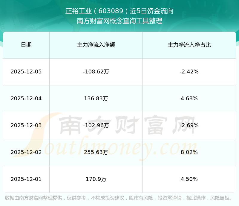 二、正裕工业(603089)近期盘面、资金面情况