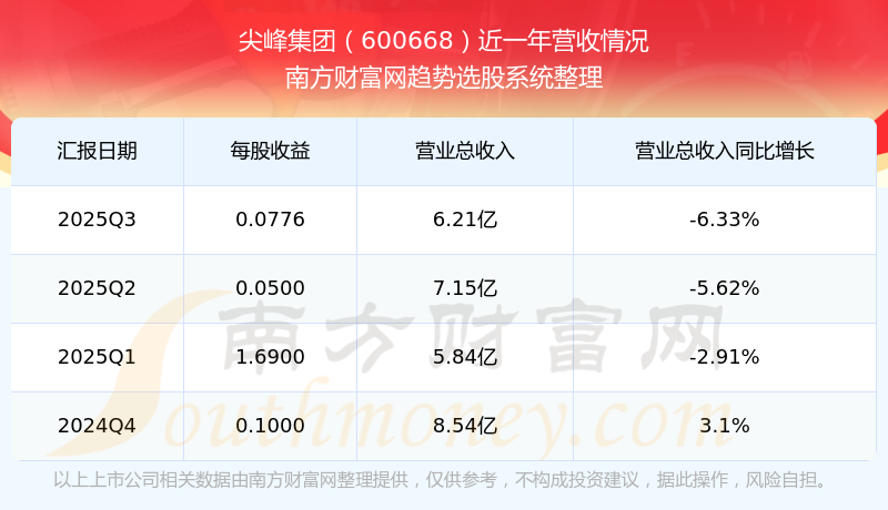 尖峰集团股票近一年营收情况如下表:
