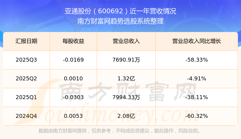 亚通股份股票近一年营收情况如下表: