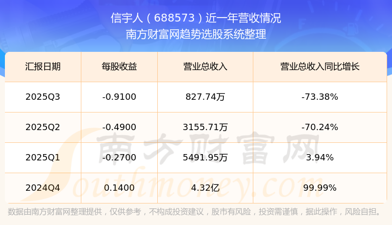 信宇人2025年第三季度报告显示,公司实现主营业务收入827.74万元,较去年同期增长-73.38%;归属于母公司股东的净利润为-8477.53万元,同比增长-150.58%;扣除非经常性损益后的净利润为-8578.25万元,同比增长-126.24%。