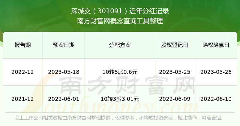 深城交最新一次公布的分红方案:10转5派0.6元。