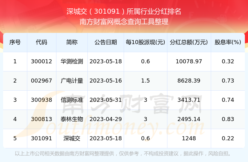 按照南方财富网趋势选股系统统计,深城交所属行业为工程设计行业,工程设计行业分红排名情况如下表: