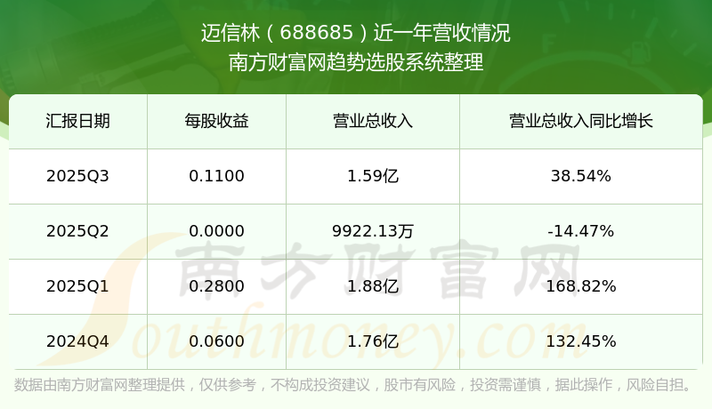 一、迈信林(688685)股票营收情况