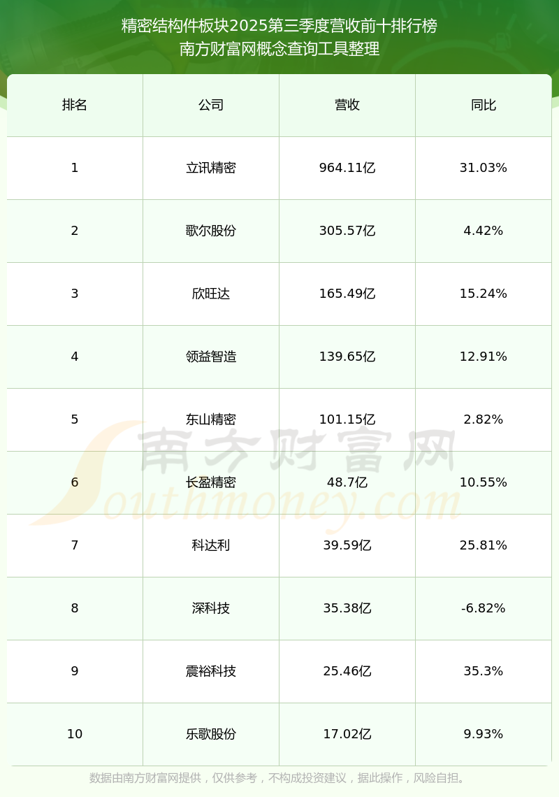 按照南方财富网概念查询工具统计,该股所属板块为精密结构件板块,该板块共有47只股票,迈信林2025第三季度营收在该板块中排名为第47名,该板块2025第三季度营收排名前十的股票如下表:
