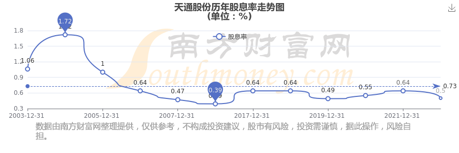 近年天通股份年度股息率走势如下图: