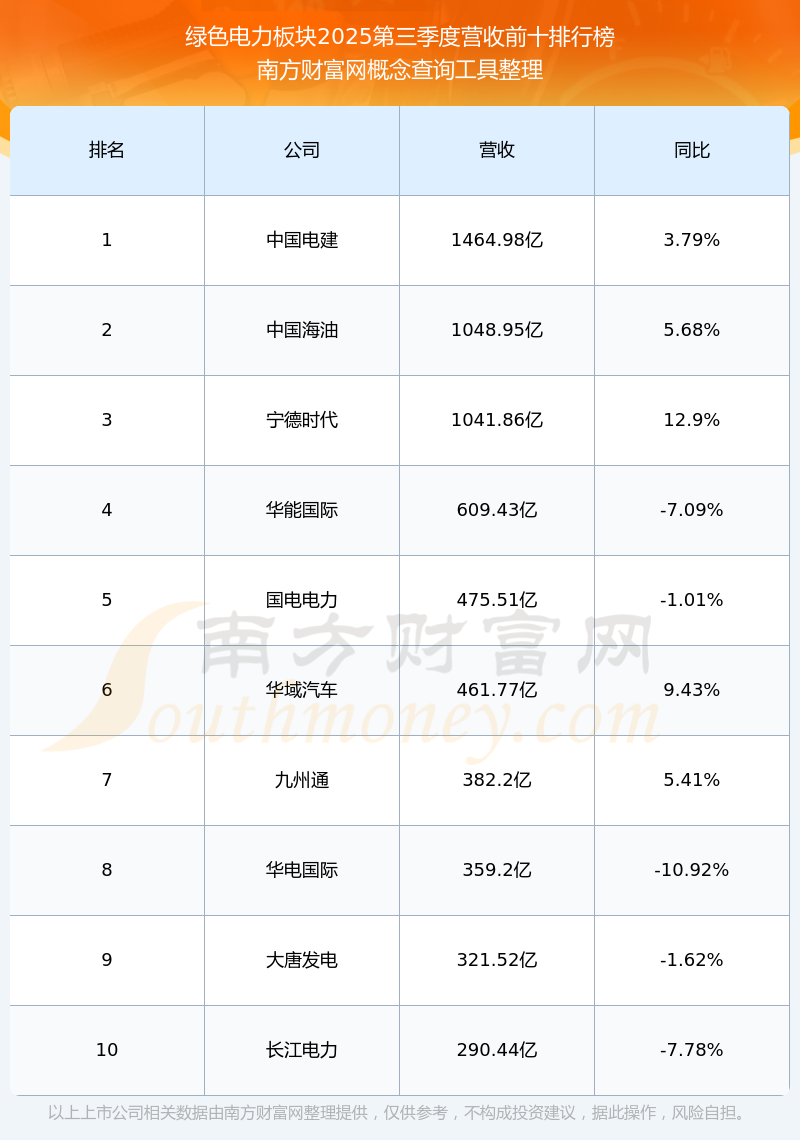 按照南方财富网概念查询工具统计,该股所属板块为绿色电力板块,该板块共有251只股票,梅雁吉祥2025第三季度营收在该板块中排名为第238名,该板块2025第三季度营收排名前十的股票如下表: