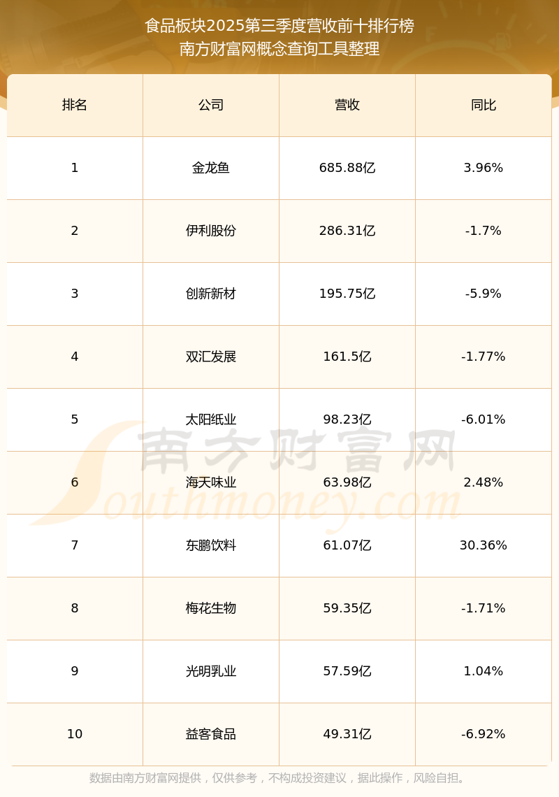 按照南方财富网概念查询工具统计,该股所属板块为食品板块,该板块共有119只股票,三江购物2025第三季度营收在该板块中排名为第119名,该板块2025第三季度营收排名前十的股票如下表: