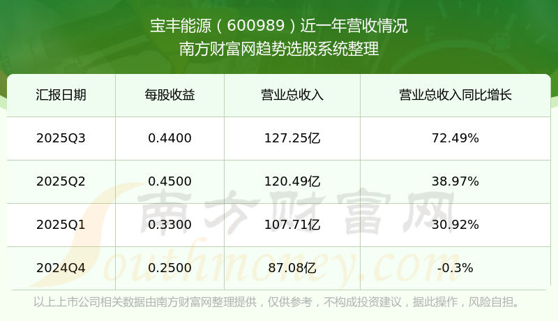宝丰能源2025年第三季度公司实现营业收入127.25亿元,同比72.49%;归母净利润32.32亿元,同比162.34%。