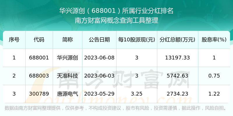 按照南方财富网趋势选股系统统计,华兴源创所属行业为检测设备行业,检测设备行业分红排名情况如下表:
