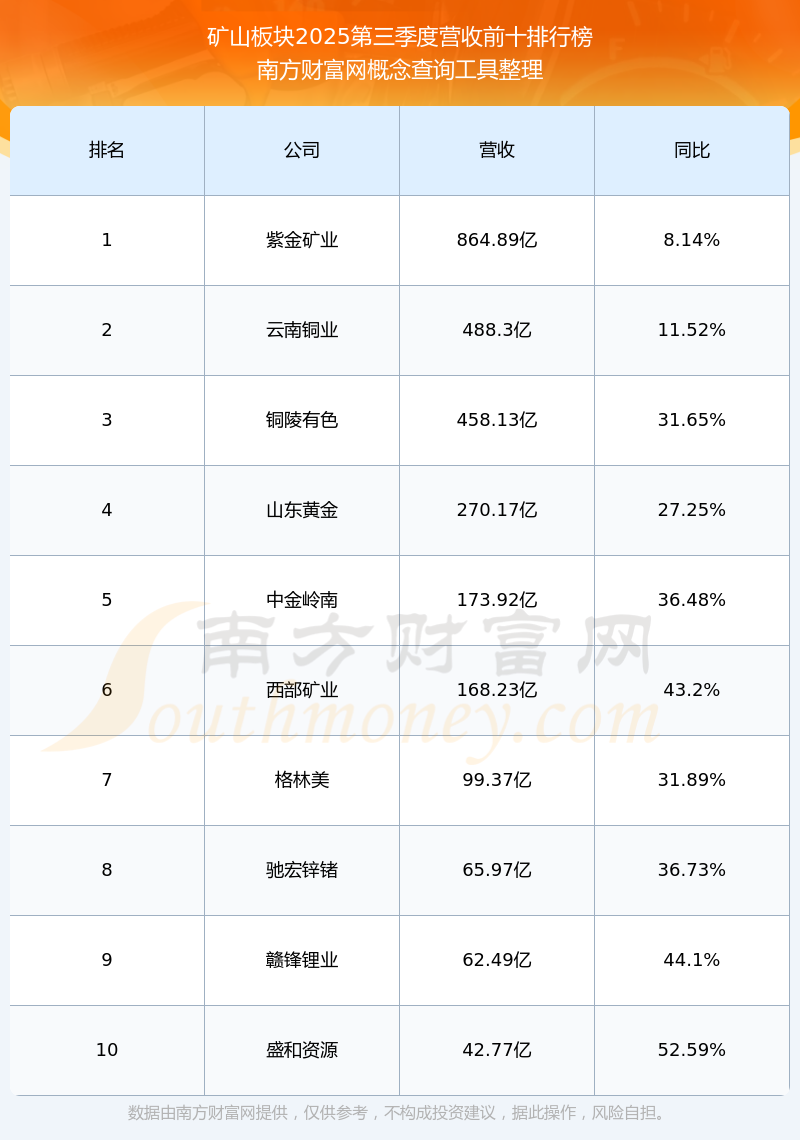 按照南方财富网概念查询工具统计,该股所属板块为矿山板块,该板块共有30只股票,中信重工2025第三季度营收在该板块中排名为第30名,该板块2025第三季度营收排名前十的股票如下表: