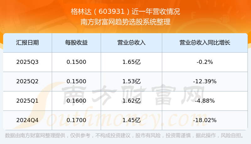 A股上市公司格林达(代码:603931)发布2025年第三季度财报,公司2025年第三季度归属于上市公司股东的净利润为3089.94万元,净利润同比增长-7.14%,环比增长4.5%。