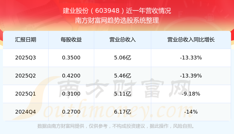 建业股份2025年第三季度财报显示,公司主营收入5.06亿元,同比-13.33%;归母净利润5748.96万元,同比56.26%;扣非净利润5376.6万元,同比67.62%;