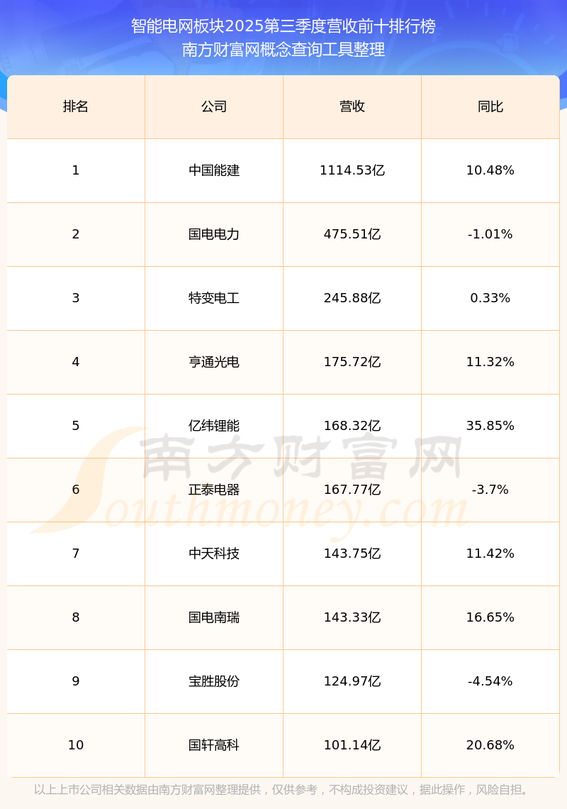 按照南方财富网概念查询工具统计,该股所属板块为智能电网板块,该板块共有283只股票,正泰电器2025第三季度营收在该板块中排名为第6名,该板块2025第三季度营收排名前十的股票如下表: